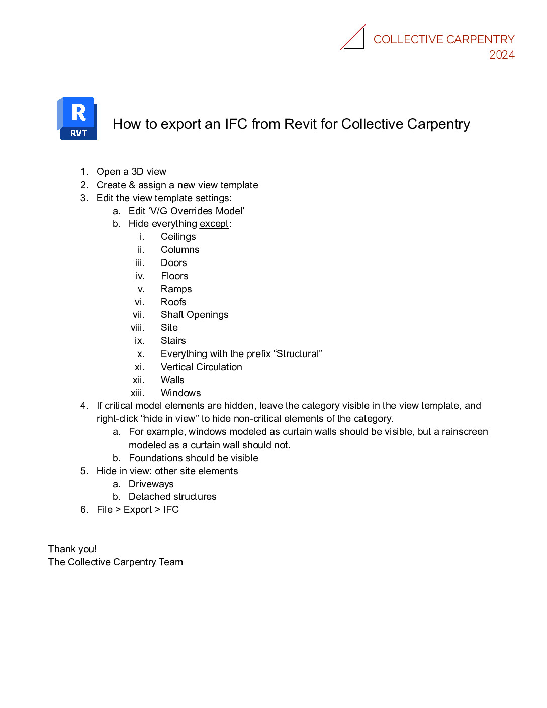 For instructions on how to export an .ifc file, download the one-page document below.